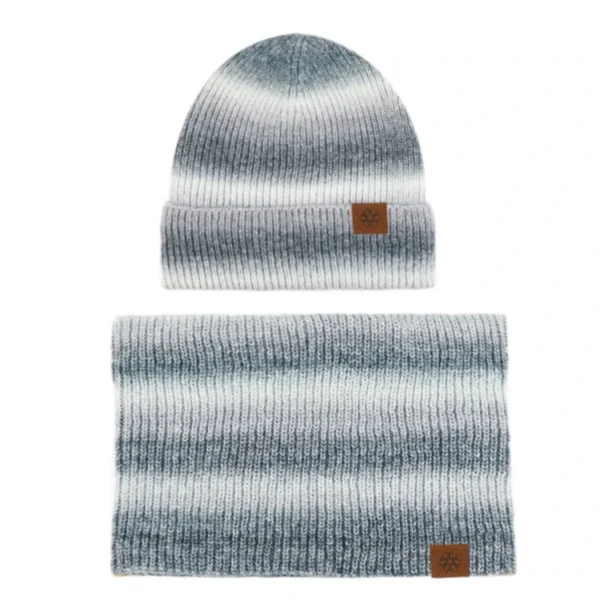 Bonnet Gris “Aurore Boréale” – Ensemble 2 Pièces Bonnet & Écharpe