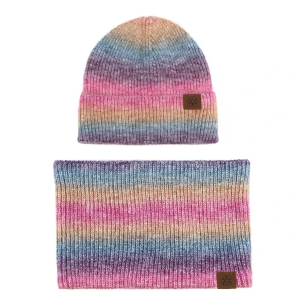 Bonnet Rose “Aurore Boréale” – Ensemble 2 Pièces Bonnet & Écharpe