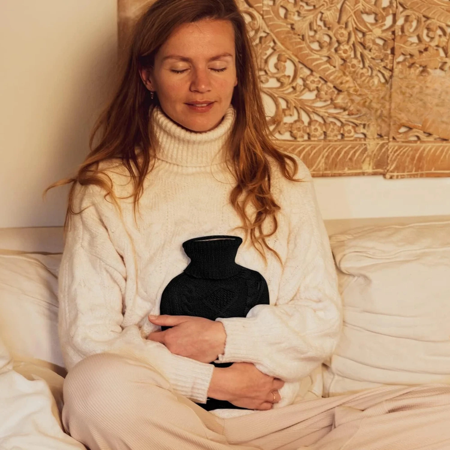 Apaisez vos douleurs et réchauffez vos soirées avec notre Bouillotte Eau Chaude en Tricot Molletonné Noir.