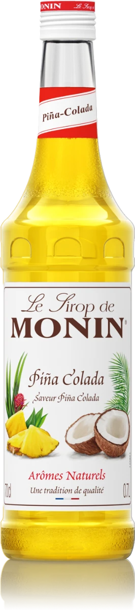 Le Sirop de MONIN Piña Colada associates the natural essence of Puerto Rican fruit with the sweetness of coconut, without the alcohol. Ideal for mocktails, it will bring a delicious exotic milky taste to an iced latte, a beer or even a Tropical Mule paired with lime.