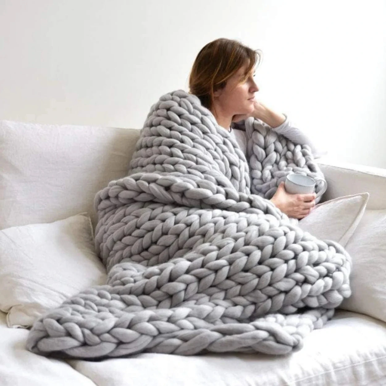 Découvrez le plaid grosse maille Adèle, votre compagnon idéal pour des moments de pure détente et de cocooning.