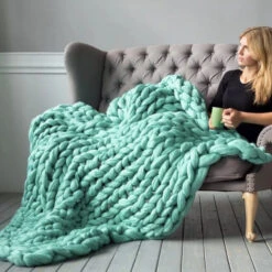 Plaid Grosse Maille “Adèle”Émeraude En Tricot Doux Et Chaud