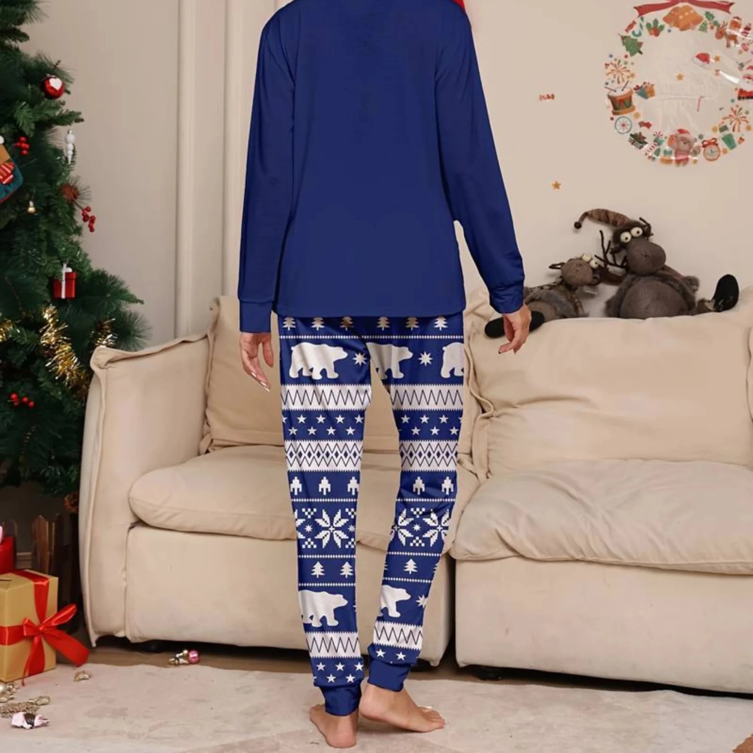 Plongez dans l’ambiance féérique de Noël avec notre Pyjama de Noël pour Femme “Sapin Étoilé et Ours Polaire” !